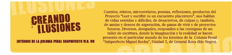 El título –“Creando ilusiones”–, que por sí solo habla de lo que significó para los involucrados la realización del taller, fue elegido por los autores que decidieron, en su mayoría, firmar con su nombre verdadero y, en muy pocos casos, permanecer en el anonimato.
